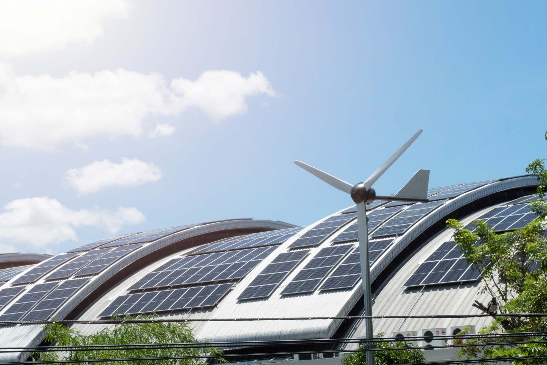 Solar façade and rooftop system installed on a 20-story corporate office building, integrated with energy-efficient HVAC systems to reduce operational carbon footprint.